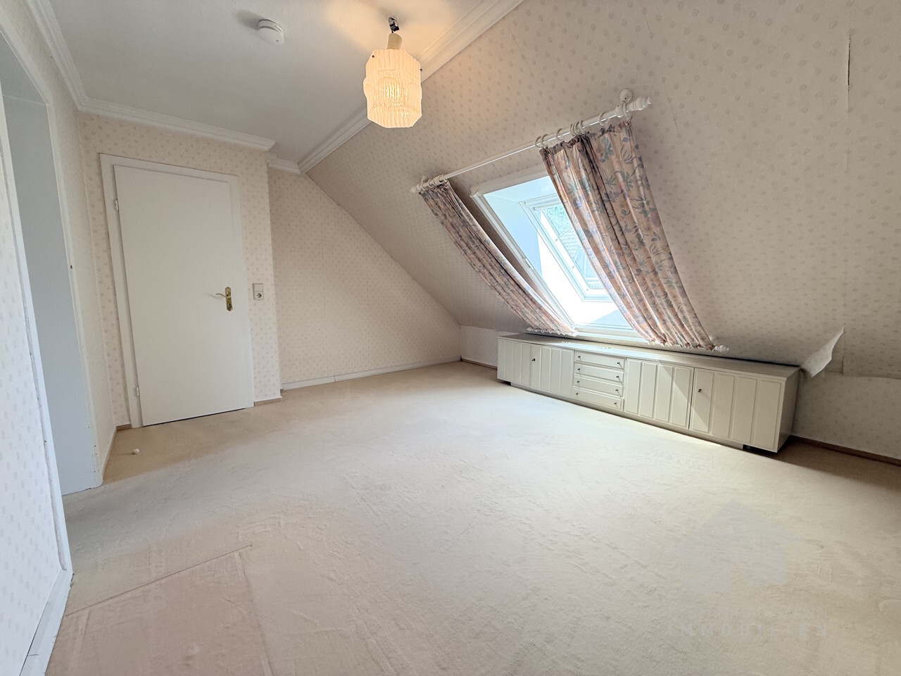 - Zimmer und Flur im Dachgeschoss mit Teppichboden belegt (Flur und zwei Räume ca. 12 m² und ca. 8 m²)