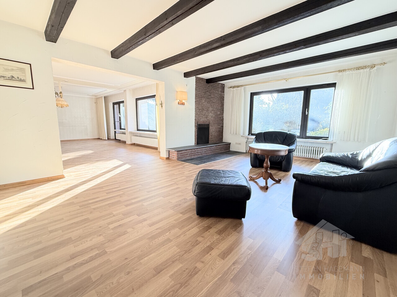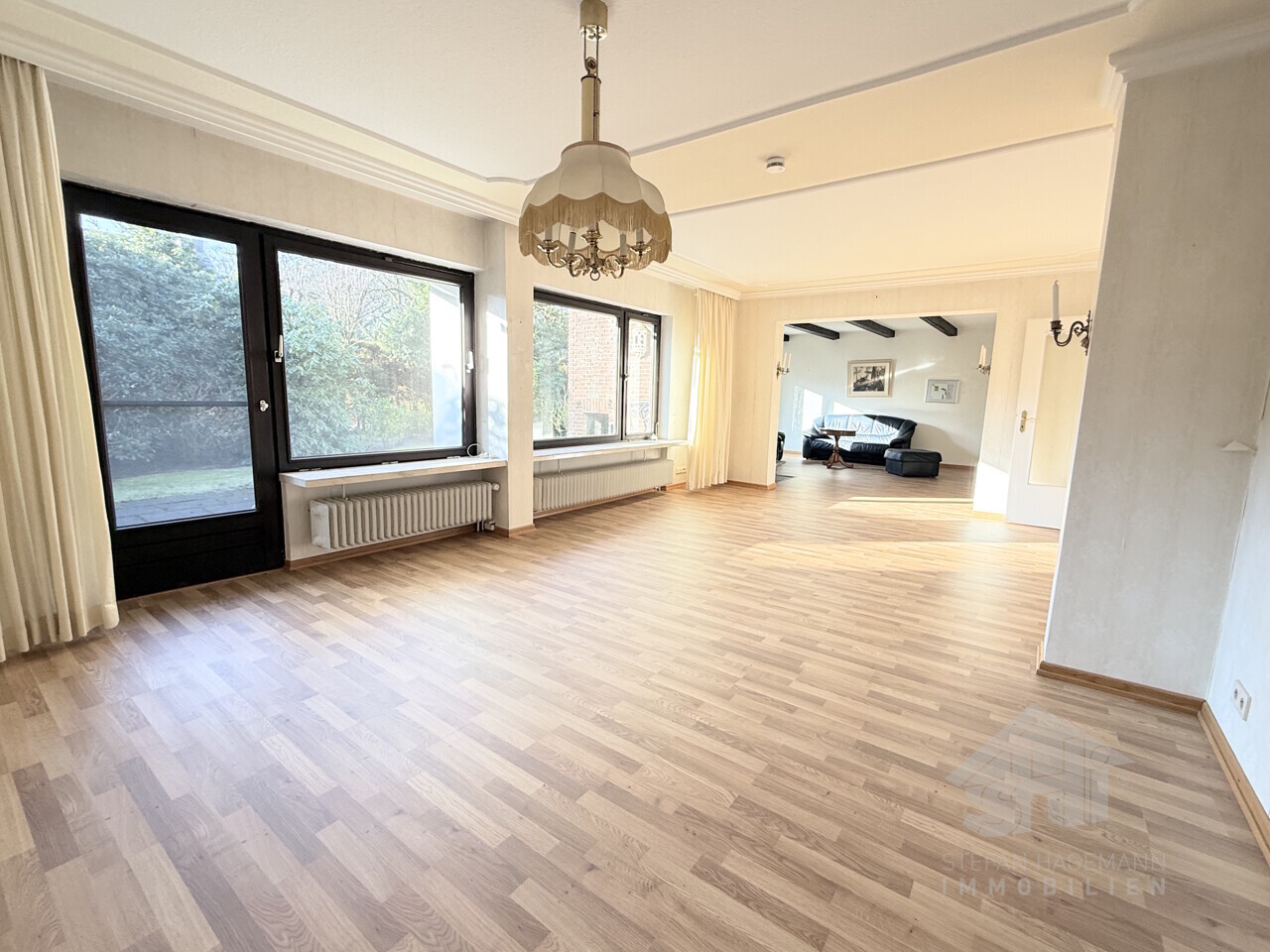 - sehr geräumiger Ess- und Wohnbereich (ca. 59 m²) mit Laminat belegt