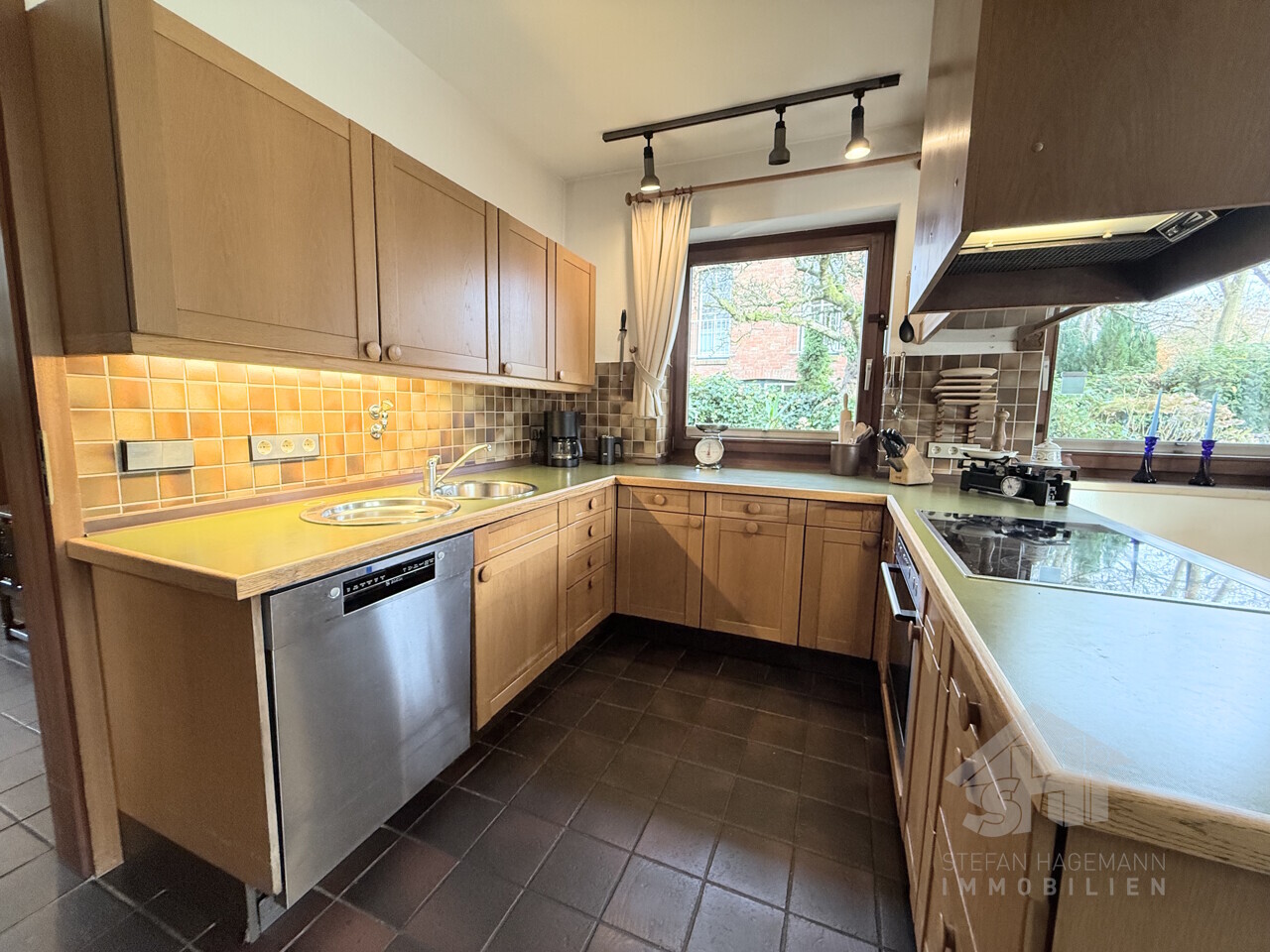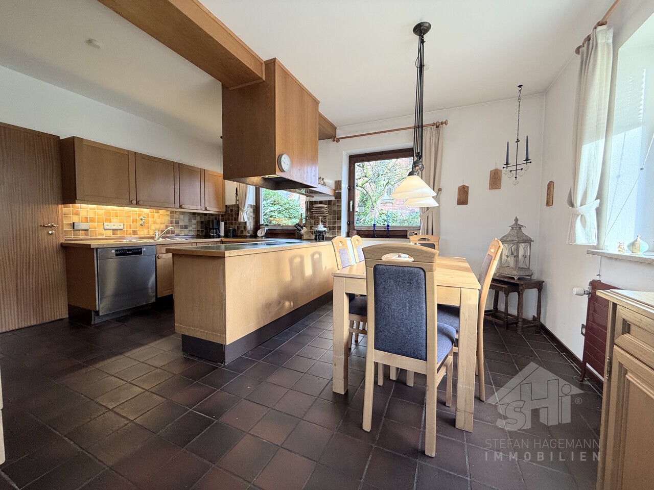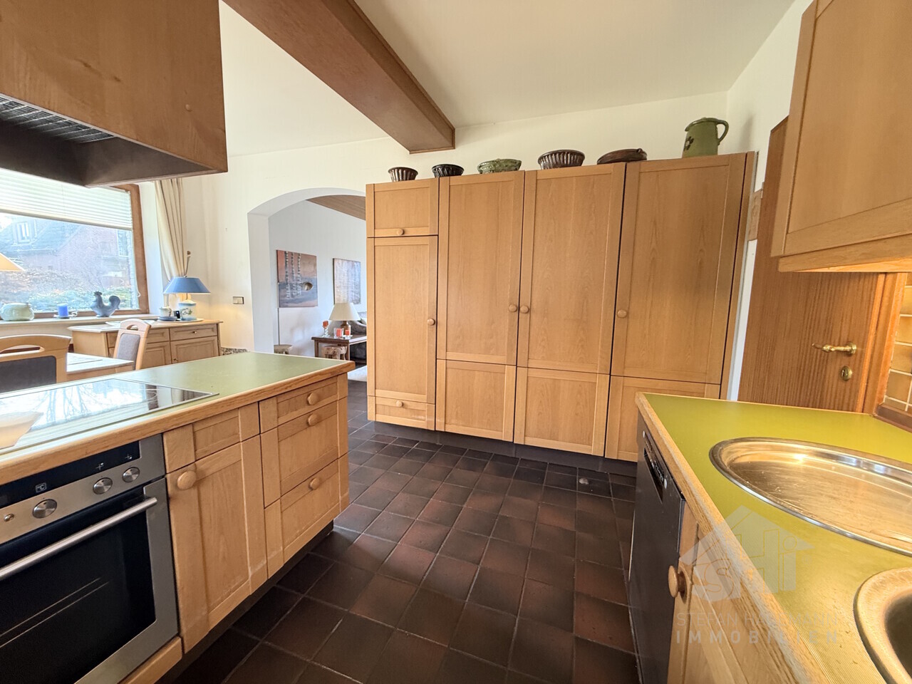 Ein großzügiger Dielenbereich führt Sie in den offen gestalteten Wohn-, Koch- und Essbereich. In der gepflegten Einbauküche mit reichlich Arbeitsfläche probieren Sie neue Rezepte aus und bereiten die Lieblingsgerichte Ihrer Familie zu. Hier behalten Sie auch beim Kochen den direkten Kontakt zu Ihren Gästen, die sich erwartungsvoll um den gemütlichen Esstisch versammeln.