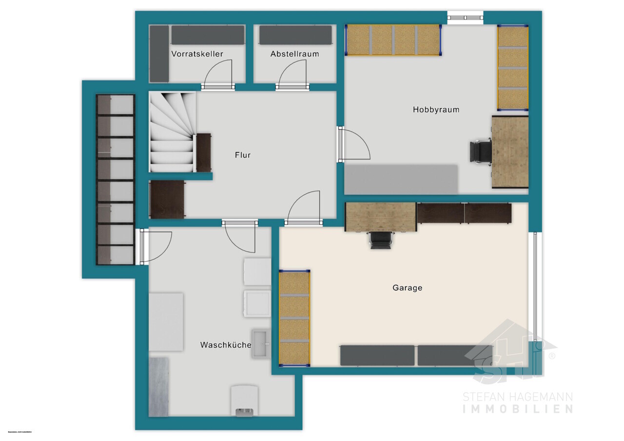 Das Haus ist voll unterkellert, bietet damit reichlich Stauraum und weitere Nutzungsmöglichkeiten. Ein beheizter Hobbyraum, eine große Garage mit Werkbereich, zwei Vorratsräume und der Heizungskeller mit Waschmaschinenanschluss stehen Ihnen zur Verfügung. Neben dem Keller sorgt außerdem der Spitzboden für ausreichend Stauraum.