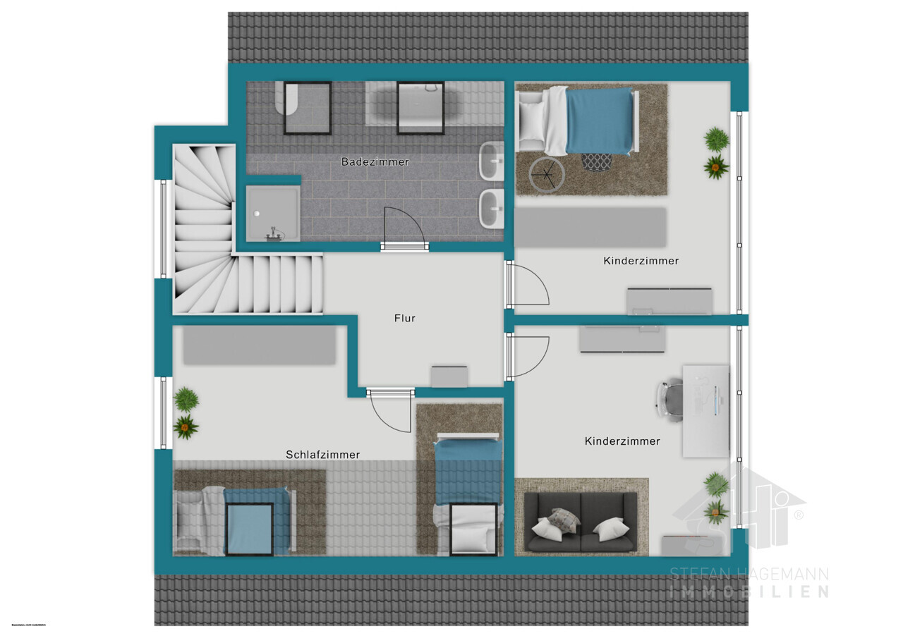 - drei gut geschnittene Zimmer im Dachgeschoss (ca. 13 m², ca. 10 m², ca. 10 m²)