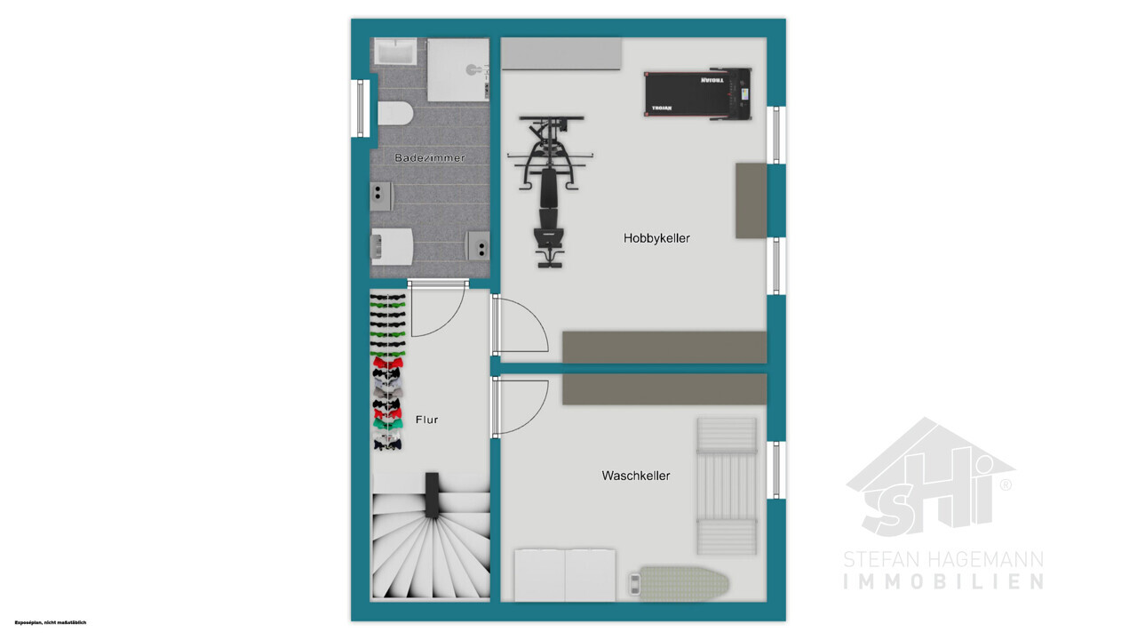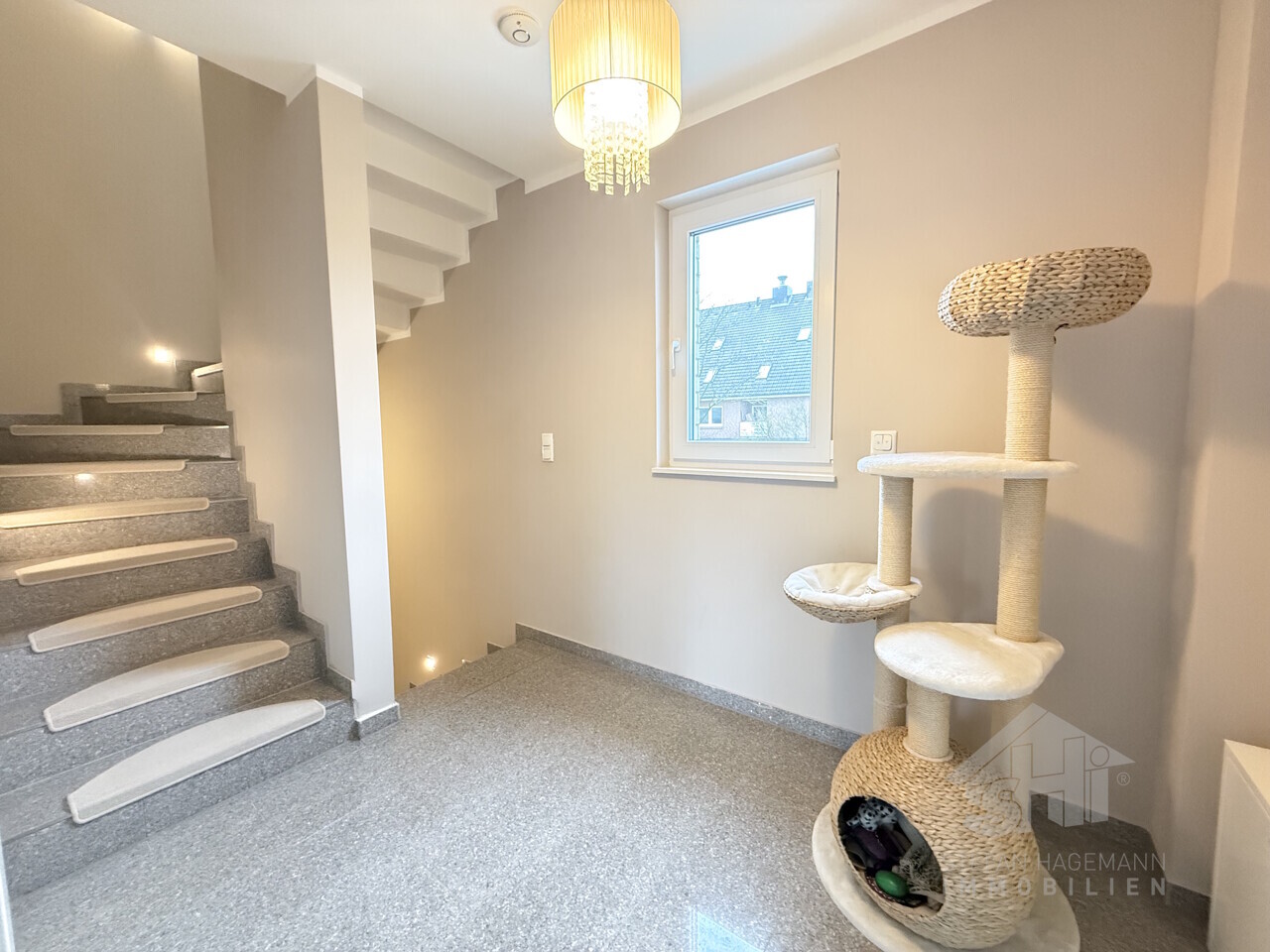 Ein Vollkeller ergänzt das Raumangebot erheblich und schafft zusätzliche Flächen für Hobby, Vorrat, Hauswirtschaft oder Stauraum. Auch in den Kellerräumen wie im gesamten Haus gibt es Fußbodenheizung, so dass ein Spielraum für die Kleinen ideal wäre.
